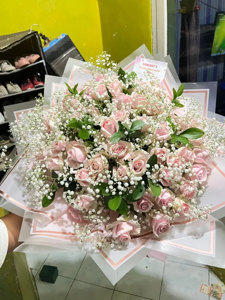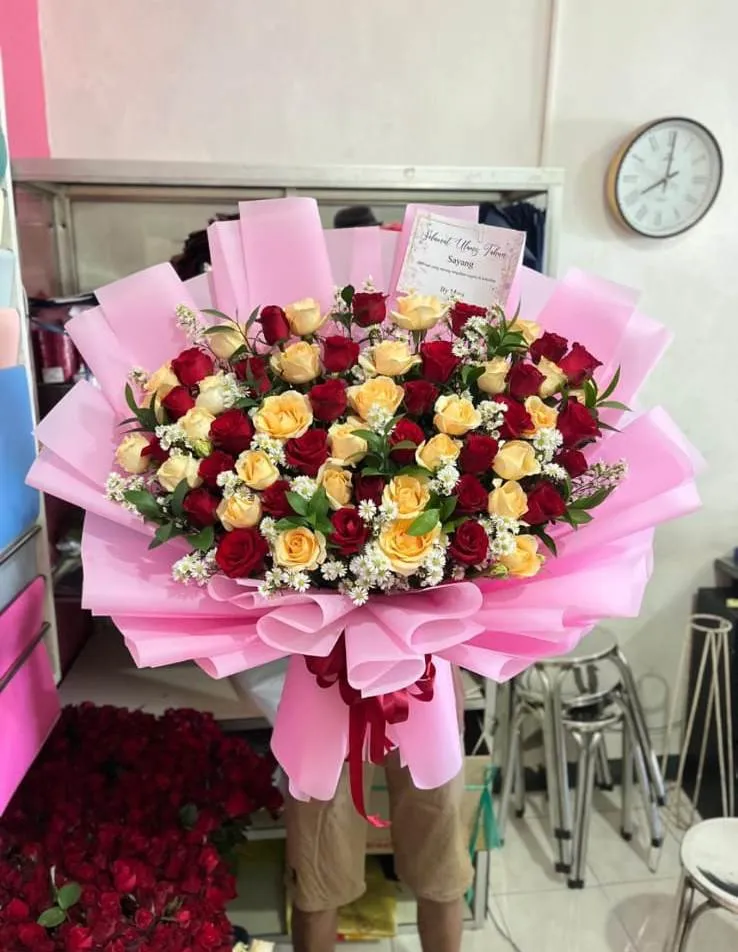 Tim kami akan segera menyiapkan pesanan Anda dengan bahan bunga segar, lalu mengirimkannya tepat waktu ke alamat tujuan.