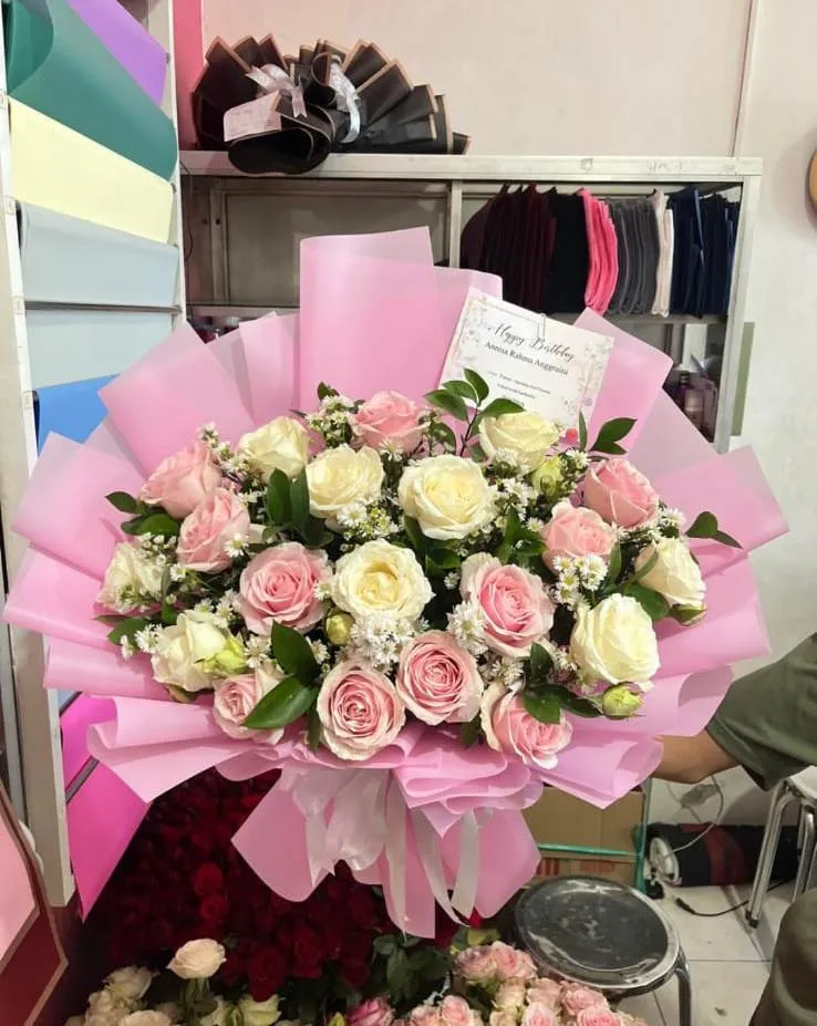 “Pesan bunga di Anika Floris selalu memuaskan! Bunganya fresh, rangkaiannya elegan, dan pengirimannya cepat. Cocok banget buat kasih kejutan ke orang tersayang.”
