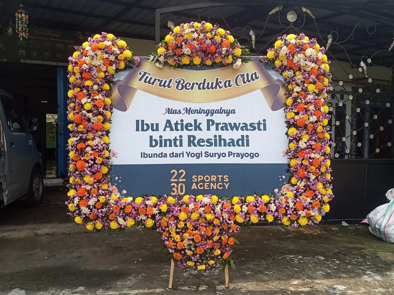 Bunga papan dengan tambahan mahkota di sisi samping untuk tampilan ekstra elegan.